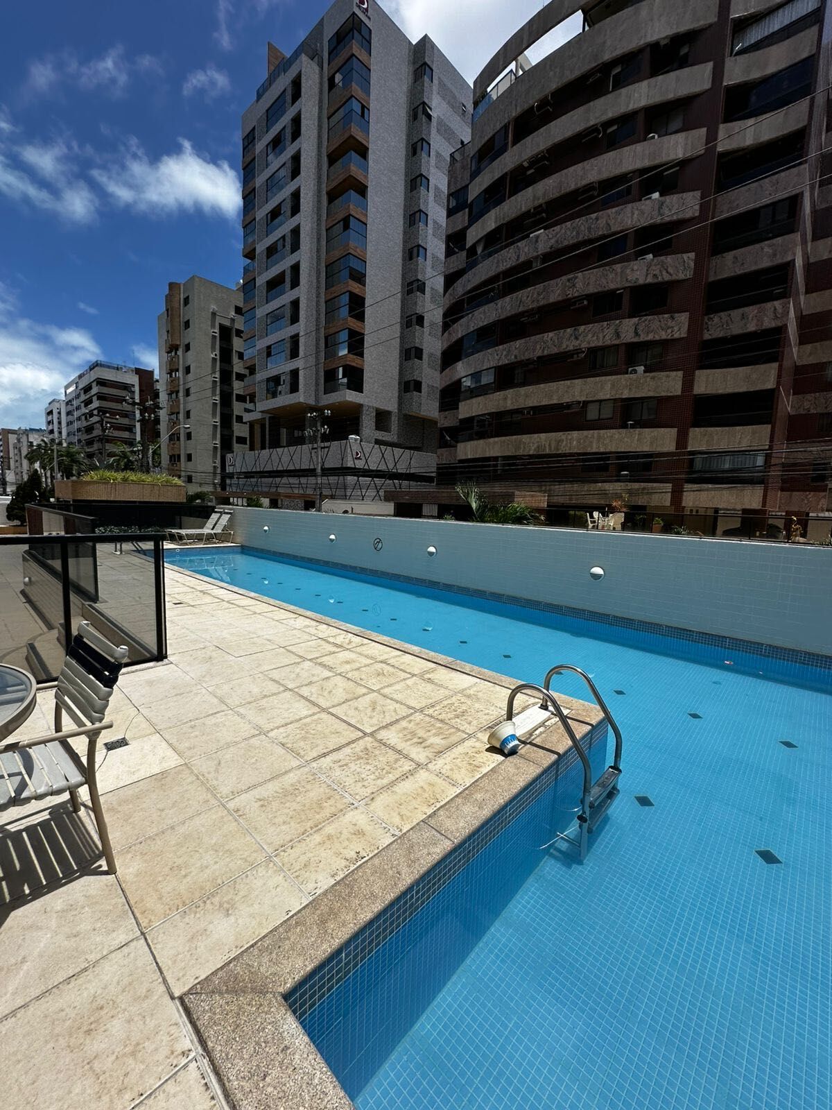 Edifício dispõe de piscina.